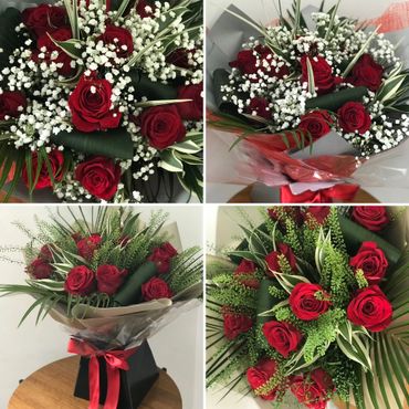 The freshest foliages, gypsophelia and either 12 or 24 of the finest red roses presented in the perfect valentines arrangement